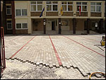 A szokásos nyári szünidei karbantartás mellett végre megújul a százhalombattai Eötvös Loránd Általános Iskola udvara. A viakolor téglák többsége már a helyére került, hamarosan elkészül a teljes burkolat.