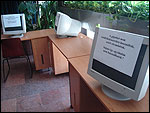 Az eszközök pótlására ígéretet kaptak a Polgármesteri Hivataltól, addig azonban csak azt a PC-t lehet ingyenesen használni, amely az Információs Pontban, közvetlenül a portás mellett található. A másik négy gép állapotáról némi pedagógiai célzattal tábla tájékoztatja a látogatókat:”Rongálás miatt nem használható.”