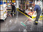 Vízkárhoz kaptak riasztást az érdi tűzoltók július 23-án, nem sokkal dél után Százhalombattáról. Mint kiderült, a Tesco Áruház készáru raktárában rakodás közben letörte egy targonca a polcsorok között elhelyezett sprinkler (tűzoltó berendezés) szórófejét.