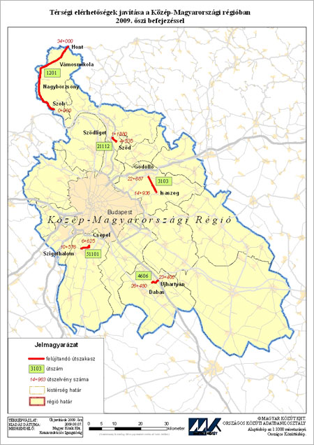 Összesen 14 projekt keretében több mint 30 négy és öt számjegyű mellékút felújítására kerülhet sor a KMOP keretén belül Pest megyében 2008–2009 folyamán.