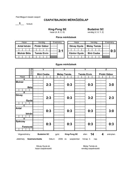 Megkezdődött a 2009-2010. évi asztalitenisz-bajnokság Pest megyében. A százhalombattai King-Pong SE szeptember 3-án játszotta az első mérkőzését Budaörs sokadik csapata ellen. Mivel a battai pingpongozók nyáron nem tudnak hol edzeni, megszokott, hogy az első meccset két és fél hónapi kihagyás után játsszák le. Az ellenfél összeállítását is ismerve, várható volt a súlyos vereség – nyilatkozta Dévay Gyula csapatkapitány. A 14:4-es eredményhez mindenki csak egy győzelmet tudott hozzátenni.