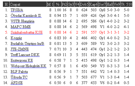 Legjobb dobók: Bolyky Dániel 17, Besenyei Tamás 16, Seregélyi József 16, Macsali Róbert 16