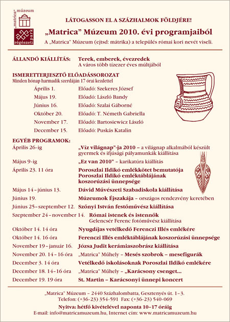 A "Matrica" Múzeum és a Régészeti Park 2010 évi programjaiból