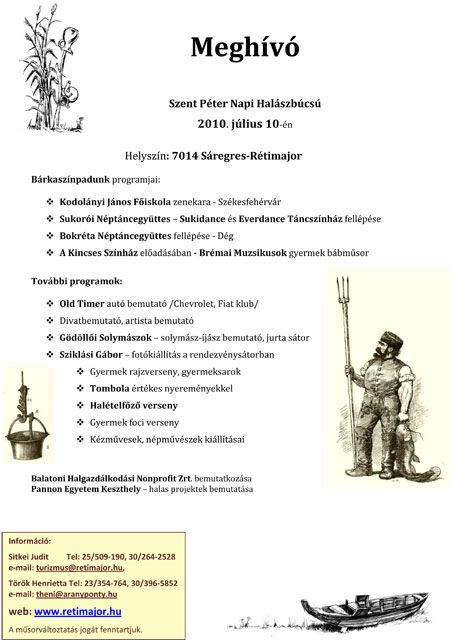 2010. július 10-én ismét megrendezik Rétimajorban a Szent Péter Napi halászbúcsút. Az eseményre ismét meghívást kapott Százhalombatta. Az egész napos rendezvényen játszóház, vásár és táncbemutató is lesz, valamint állatsimogató, kirakodóvásár, színpadi és családi programok várják az érdeklődőket.