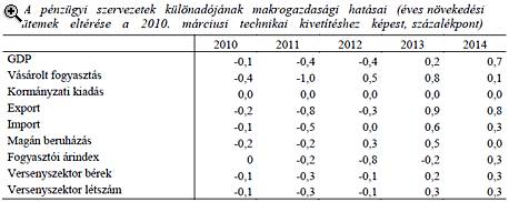 A KT alapvetően a "bankadó" hatásaira fókuszált és abból indult ki, hogy ez egy egyszeri, csak a 2010-es évben megjelenő rendkívüli tétel. Íme a hatás: