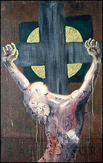 Jean Baudrillard művészetfilozófus szerint a realitás és fantázia összjátékából egy sajátos valóságfeletti születik. Ez a két elem jelenik meg Fazekas Levente ikonjaiban is: egy adott képi világ, amely évszázadok óta meghatározza a művészettörténetet, és egy sajátos, groteszk figuralitás. Emberábrázolása évek óta tükrözi azt a fajta feketehumort, amely a társadalom iránt nem közömbös, kritikai ember sajátja, s amely minden keserű íz mellett igenis szórakoztató. Ezeket az alakokat ülteti most az ikonok szereplőinek helyébe. Így tudja végigjárni a művészettörténet meghatározó témáját, hogy az ne unalmas reprodukció legyen, hanem a szó nemes értelmében egyfajta újrajátszás. Közben persze adódnak újabb és újabb festészeti kérdések, amelyeket szakmai becsülettel jár végig: felhasznál minden felületet, anyagot, ami az érzékletességhez hozzáadhat. Nem öncélú kísérletek ezek, hanem óhatatlan előtanulmányok, amelyek önállóan is izgalmasak.