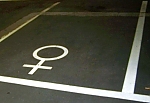 A fotót Svájcban készítettem, ahol segítik a női vezetőket. Persze, nem azért, mert nem tudnak vezetni, hanem azért, hogy a bevásárlóközpontok parkolóházaiban gyerekekkel és nagy csomagokkal ne kelljen messze parkolniuk a bejárattól, továbbá azoknak a nőknek, akik félnek az esti órákban, szintén ne kelljen sokat gyalogolniuk a sötét parkolóházban. A bejárathoz közel ilyen felfestést alkalmaznak a nők számára, amit tiszteletben tartanak a férfiak, nem foglalják el a helyet. Sajnos, nálunk ez a mozgáskorlátozott parkolóknál is probléma, amikor egészséges fiatalok állnak be a helyükre. Tíz napos kint tartózkodásom alatt azt tapasztaltam, hogy rendkívül előzékenyek, tisztelik a másik tulajdonát, nem nyúl senki a másikéhoz, így nincs szükség arra sem, hogy a kertben kikössük a biciklit.