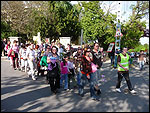 A Széchényiből indult a hosszú menet transzparensekkel – Ma a mi sulink. És holnap? A ti sulitok sincs biztonságban, csatlakozz!, Ne zárjátok be a sulit! Ne a gyerekeken spóroljanak! El a kezekkel az iskoláktól! Nem megyünk a Széchenyiből! Egy óra alatt vagy négyszáz diák, szülő és pedagógus érkezett meg a fenntartóhoz, ahol már várta őket a városvezetés. A menetben egy százhalombattai pedagógussal, Csapó Andreával is találkoztam.
