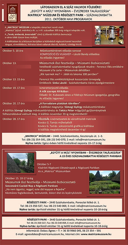 A "Matrica" Múzeum és Régészeti Park októberi programjai