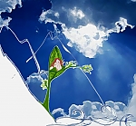 Ez volt a mi jótettünk az Ünnep napján. Nem is volt olyan nehéz, igazából még az Üveghegy sem. Azt hiszem, csak meg kell találni azt a két embert, akik egymásnak vannak szánva és valahogyan szépen össze kell terelgetni őket. De tudjátok, az égiek nem lehetnek ott mindig mindenütt. Nézzetek körül jól, biztosan észreveszitek azt, aki épp rátok vár! Szólítsátok meg! Beszéljetek hozzá vagy üljetek mellette csöndesen! Meglátjátok, milyen egyszerű. Mint én. A gomolyfelhő. (Az illusztrációt László Ani készítette.)