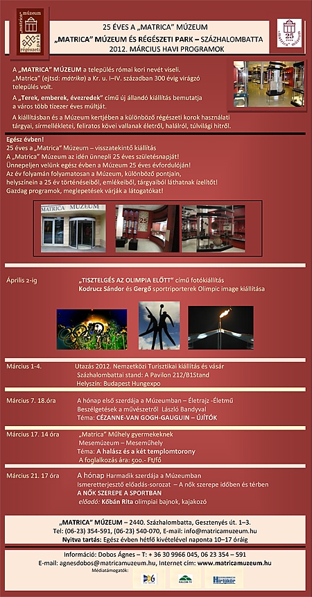 A "Matrica" Múzeum és Régészeti Park programajánlója