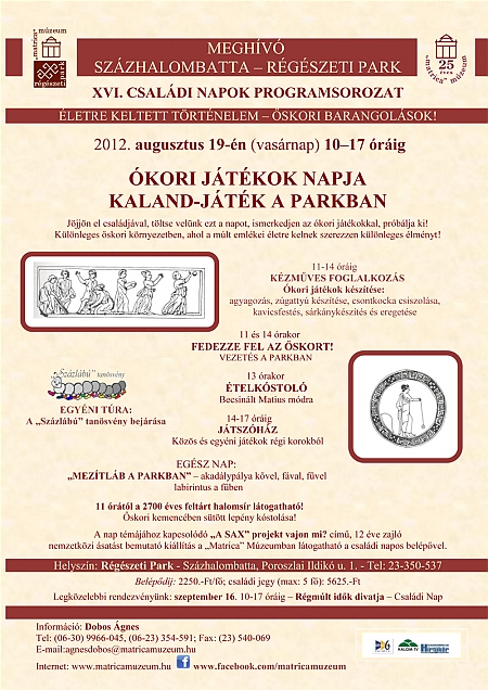 2012. augusztus 19-én 10 - 17 óráig kaland-játékra várják az érdeklődőket a Régészeti Parkba.