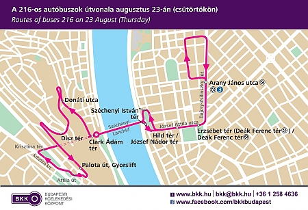 Az Erzsébet tér felújítása (http://www.bkk.hu/2012/08/augusztus-9-etol-ket-hetre-lezarjak-az-erzsebet-teret/) miatt augusztus 23-án, csütörtökön 18 óra és éjfél között közlekedik majd a 216-os járat az Arany János utca M és a Dísz tér között 10 percenként.