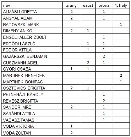 A battai versenyzők névsora és eredményeik: