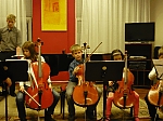 A zeneiskola tanárai parádés, humoros, mindenkit megnevettető produkciókkal szórakoztatták a jelenlévőket, majd a tanszakok közös produkciói következtek. A fuvolisták hópelyhei, a csellisták kincskeresői, az ütősök dobos kalandozásai és a tyúkanyó a csibéivel, mind-mind jó példa arra, hogyan lehet gyerekekből jó közösségget formálni.