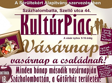 KultúrPiacot szervez a százhalombattai Sérültekért Alapítvány október 13-án, vasárnap a dunafüredi Gátőrházban. Sok egészséges finomság mellett különböző programokkal várják az érdeklődőket. Képzőművészek kiállítása, régiségek vására, interaktív mesejáték, játszóházi foglalkozás biztosítja a kikapcsolódást, jó hangulatot.