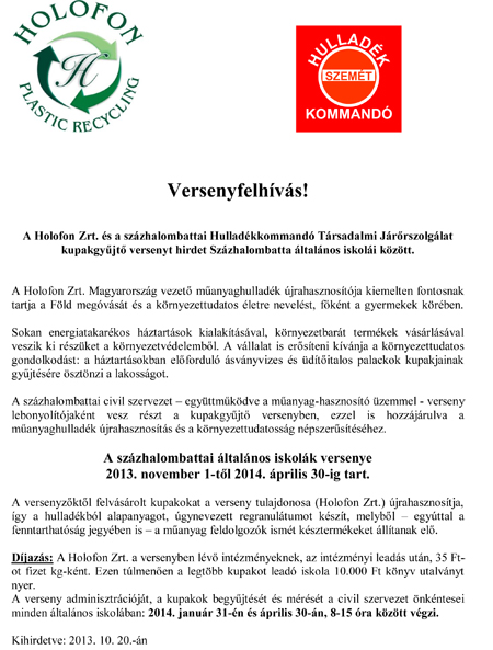 Kupakgyűjtő-verseny az általános iskolákban