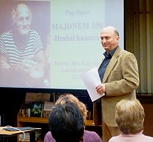 Lágy mosolyok és könnyű nevetés tette derűssé a hűvös, korán sötétedő novemberi estét 19-én, amikor dr. Pap János nevetéskutató Bohumil Hrabal humoráról tartott előadást a százhalombattai Hamvas Béla Városi Könyvtárban.