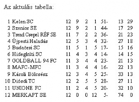 Szenior SE: Boda – Szabó, Pauliscse, Koncsár, Varga – Titz, Héring, Rakvács, Auer – László, Henrik.