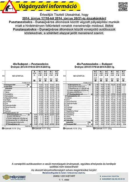 Vágányzár Pusztaszabolcs és Dunaújváros között