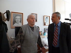 Józsi bácsinak Sinka László alpolgármester adta át Orbán Viktor miniszterelnök emléklapját és az önkormányzat ajándékcsomagját a városházáról és a helyi médiától érkező delegáció koszorújában.