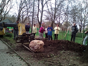 Szülői támogatással, az óvónőkkel karöltve kezdődött meg a munka egy tavasz eleji délután. Egy korábban sziklakertként ismeretes "halom" átalakult. A gyorsan növő borostyán ekkorra már eltüntetett maga alatt mindent. Néhány növény áthelyezésre, az apróbb sziklakerti kövek eltávolításra kerültek. Az első, vöröses márványos óriáskő hosszú utat megtéve érkezett a helyére. A többiek még váratnak magukra.
