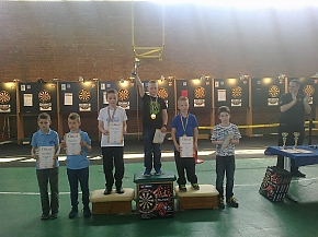 Bronzérmet szerzett gyermek kategóriában Mazzag Márton (a dobogón jobbra), a százhalombattai Kőrösi iskola harmadikosa az országos darts "Sulimpia" versenyen április 16-án Budapesten.