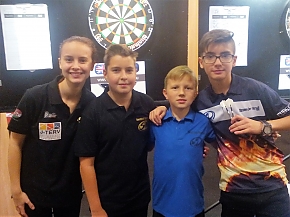 Az összeállítás veretlenül végzett a második helyen, és Marci is fontos győzelmeket aratott mérkőzései során. Az ifjú dartsos első nemzetközi versenyére november 5-én került sor a WDF (World Darts Federation) égisze alatt megrendezett budapesti tornán, ahol a 14-18 évesek között egy győzelemmel és egy vereséggel a 17. helyen zárta a küzdelmeket a 45 fős mezőnyben. A magyar és a külföldi ellenfelek, valamint a szakemberek egyaránt elismerőleg szóltak játékáról, kiemelve, hogy rendkívül jól számol, amely nagyon fontos képesség a sportágban. (A képen balról jobbra a Sport DC II tagjai: Neumajer Kitti, Serfőző Balázs, Mazzag Márton, Neumajer Gergő. Fotó: Neumajer Krisztián)