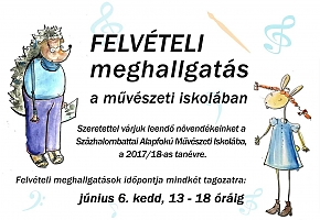 Zeneművészet és képzőművészet szakon is felvételi meghallgatást tartanak a Százhalombattai Alapfokú Művészeti Iskolában a 2017/18-es tanévre jelentkezőknek június 6-án (kedden) 13 és 18 óra között.