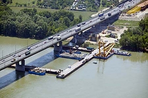 A Hárosi Duna-hídon átvezető kerékpárút a munkaterület része, ott építési munkák zajlanak. Ezért a gyalogos közlekedés lehetőségét a forgalmat bonyolító hídon az elválasztó sáv felőli üzemi járda felhasználásával biztosítják. A járda szélessége és közúti visszatartó rendszere (a korlátok magassága) miatt nem elegendő a kerékpáros forgalom biztonságos átvezetésére, így ezt a szakaszt a biciklisták csak járművüket áttolva vehetik igénybe.