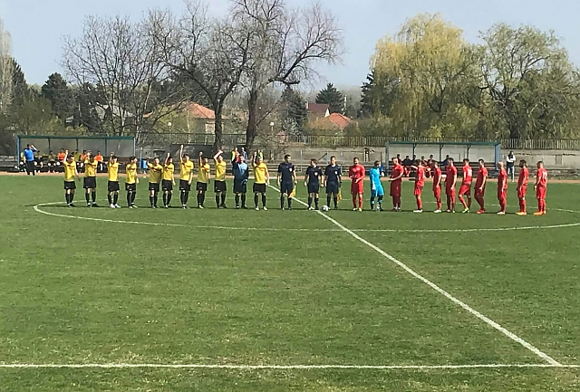 A májusban szokatlanul hűvös időjárás ellenére sokan látogattak ki a Vasút utcai létesítménybe, ahol a felázott pályán már az 5. percben meglepetést okozott a vendégcsapat.