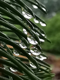 Varga László a Pest megyei Káván, nyaralás közben, egy nagy eső után sétált a kertben, ahol észrevette a tűlevelek végén, cseppekben összegyűlő esőt. A Pine needles & s címre keresztelt fotón a gömbölyű, lágy formák és a hegyes tüskék kettőssége alkot tökéletes harmóniát.