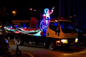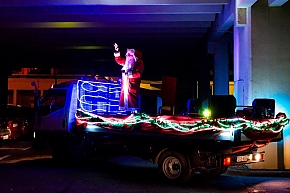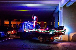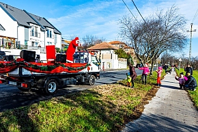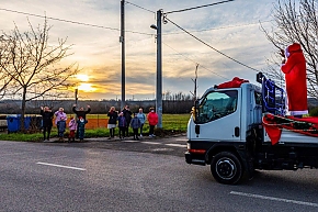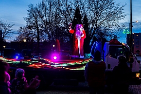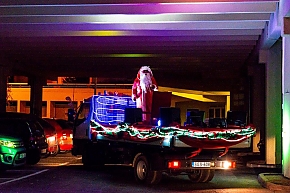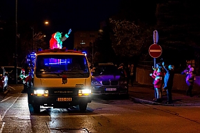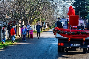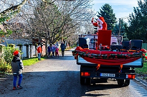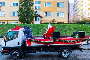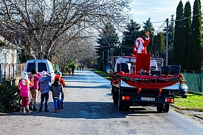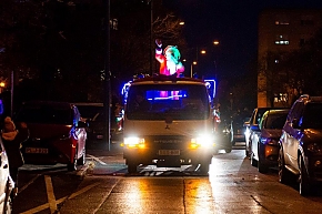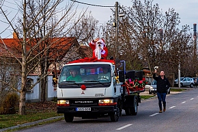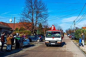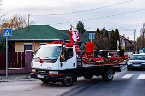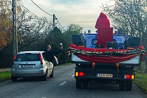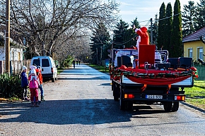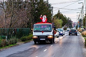 A Mikulás-kocsi zenélt, a nagyszakállú pedig lelkesen integetett és mindenkihez volt egy-egy kedves szava: "Hohohohó, remélem, jó voltál!" Nem csoda, hogy jókedv járt a nyomában.