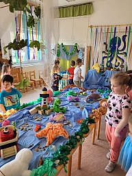Egy csoportszoba adott otthont a látványos kiállításnak, ahol a gyermekek megismerhették a vizes élőhelyek állatait, növényeit, a vízi közlekedés eszközeit, horgászfelszereléseket, mesebeli vízi élőlényeket. A szülők által behozott sok érdekesség révén látványos kiállítás jött létre. A gyerekek megcsodálták a hatalmas csigaházakat, kagylókat, a tavirózsás tavat, kishajókat. Megkereshették hol bújt el a béka, hol él a fóka, mit eszik a bálna.