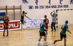 A vendégek kezdték a mérkőzést, de Kovács János védése jelezte, komolyan gondoljuk a 100% megtartását. Az első négy percben előbb Schulheisz Botond talált be, majd két Keresztes Levente gól következett. A 3-0-hoz kellet még két védés is Kovácstól. A vendégek első góljukat büntetőből szerezték, de ez nem törte meg a battai fiúk lendületét. A félidő közepére már öt gólos előnyt sikerült kialakítani. A 20. perc környékén kis hullámvölgybe kerültünk és az alföldiek felzárkóztak egy gólra (12-11), de a szünetig Kis Molnár Máté kettő és Gyurcsovics Árpád három góljára csak kettővel tudtak válaszolni, így a pihenőre nyugodtabban mehettünk.