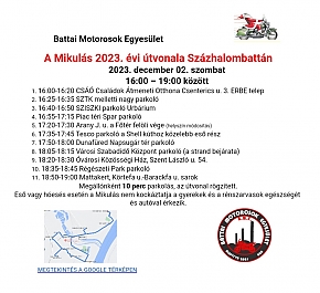 Kedves százhalombattaiak! Idén immár 3. alkalommal elkísérjük a Mikulást battai körútjára; december 2-án, szombaton 16 és 19 óra között a már megszokott 11 állomáson találkozhatnak a motoros mikulással és segédeivel, akik az érdi Fészek Egyesületnél kezdik az útjukat.