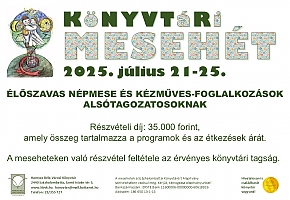 Július 21. és 25. között a már klasszikusnak számító mesehét várja az alsótagozatos gyerekeket. A népmesék megismerése, hallgatása és mondása sok érzékszervet kinyit, sokféle kompetenciát erősít: az olvasóvá neveléstől a beszédbátorságig. A kiegészítő tevékenységek – kézműveskedés, ismerkedés a népi kultúrával – mind gazdagabbá teszik az együttlétet.