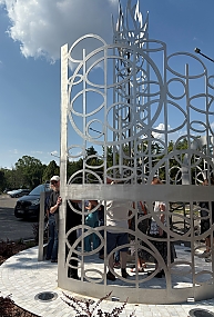 Bandy a tervezés során a finomító főbb szimbólumait, a technológia összetettséget, a desztilláló tornyokat, a várost is átszelő kőolajvezeték kanyarulatait, és mindezek középpontjában, mint legfontosabb alkotóelemet, az égre törő fáklyát jelenítette meg. Decemberben személyesen is láthatta, bejárhatta a frissen felállított, a csúcsán 6 méter magas szobrot. Némiképp magával zsörtölődve fedezte fel, hogy az acélvonalak híven tükrözik azt is, mikor itt-ott kicsit megremegett a keze rajzolás közben. Ezek az apró kitérők, egyenetlenségek teszik acélba vésetten is jelenlévővé a 2025. februárban elhunyt alkotót.