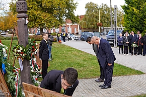 Török Sándor és Nagy Balázs alpolgármesterek helyezték el az Önkormányzat koszorúját a Szent István templom melletti kopjafánál. A nemzetiségi önkormányzatok, a Képviselő- testületben mandátummal rendelkező pártok, szervezetek, független képviselők, az egyéb bejegyzett pártok, az iskolák, óvodák, intézmények és cégek, továbbá a helyi szervezetek és a városlakók is elhelyezték koszorúikat, virágaikat.