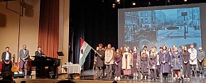 A koszorúzáson és az ünnepségen Huff Zalán zenész, dalszerző adott elő gitáros éneket. A történelmi eseményeket a MOL-SZISZKI tanulóinak lelkesítő előadása elevenítette fel.