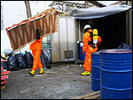 A robbanás következtében a konténer tartalma és környezete veszélyes hulladékkal szennyeződött.