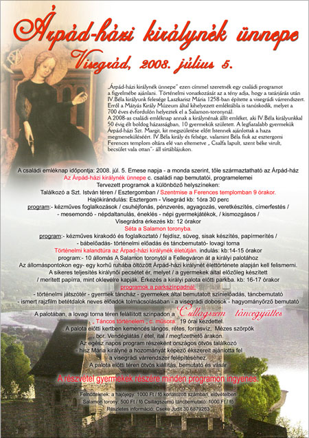 Az egész napos program részeként országos ötvös találkozó, hisz Mária királyné a hozományát képező ékszereit aján-lotta fel a visegrádi várrendszer felépítéséhez.