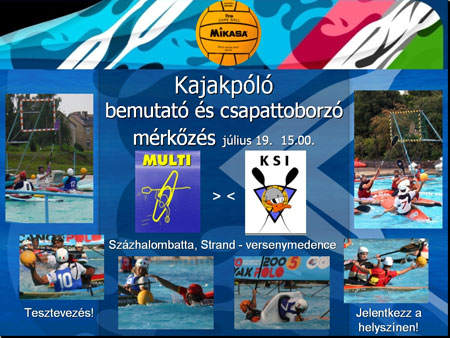 Új sportág hódít immáron hazánkban is, ami az evezős sport és a vízilabda házasításából született. A kajakpóló Magyarországon már 20 éve jelen van, de igazi hódításra most készül. Mindehhez a hétvégi százhalombattai bemutatón keres olyan érdeklődőket, akikből később igazi kajkpólós válhat. A Városi Strand versenymedencéjében 15 órától bemutatót tartanak a kajakpóló sport legjobbjai, majd pedig tesztevezésre hívják a vállalkozó szellemű strandolókat.