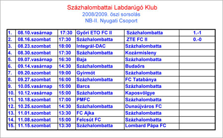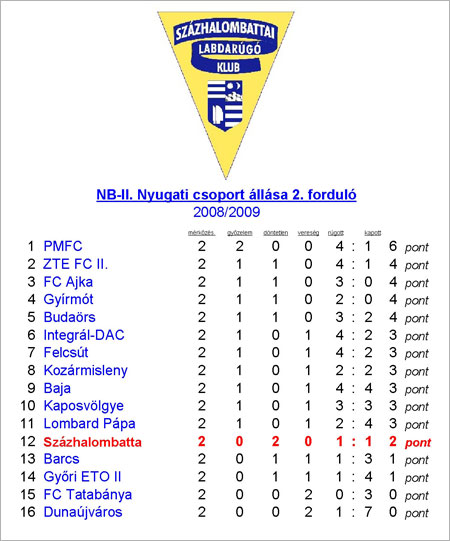 Az NB-II. Nyugati csoport állása - 2. forduló