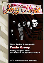 Az "ANTROPOS.hu Jazz Night" következő állomása árilis 9-én a Budapest Jazz Clubban lesz, melyen fellép a Fusion Group. Ezen az estén a hagyományos hangszerelés keveredik progresszív témákkal és harmóniavilággal.