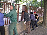 A következő lépés a kerítés felújítása volt. A Szülői Munkaközösségtől kértünk segítséget, hiszen nagy iskolának a kerítése is nagy, azaz hosszú. A szülők azonnal pozitívan reagáltak a kérésünkre. Közösen kijelöltünk három egymás utáni szombatot, s kezdődhetett a munka: csiszolás, korrózióvédelem, alapozás és a festés. A szükséges anyagokat és eszközöket az iskola dologi keretéből fizettük ki.