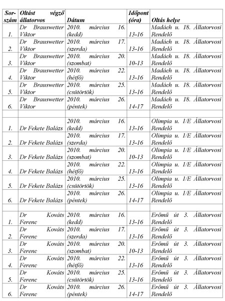 A veszettség elleni védekezéssel egyidejűleg kötelező a belső parazitamentesítés is, amelyhez az oltó állatorvosnál kapható gyógyszer. A szájkosárral és pórázzal ellátott kutyákat csak 14 évesnél idősebb személyek vihetik az oltóhelyekre, és vinni kell a korábbi oltási igazolványt is. A kötelező védőoltás elmulasztását állatvédelmi bírsággal büntetik. Az eboltásra az alábbi helyszíneken és időpontokban lehet jelentkezni: