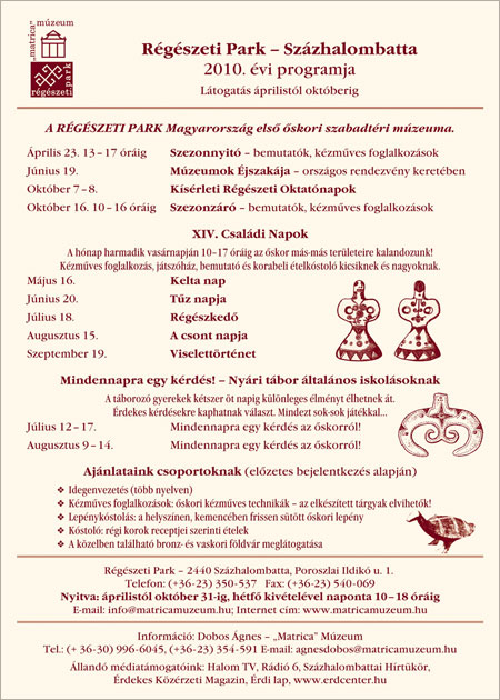 A "Matrica" Múzeum és a Régészeti Park 2010 évi programjaiból