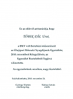 Az egyesület döntéséről szóló díszoklevelet egykori közvetlen munkatársai adták át neki egy szék kíséretében, amely arra való, hogy biztonságosabbá tegye a számítógépezést. Pali bácsi ugyanis rendszeres látogatója az internetes oldalaknak.