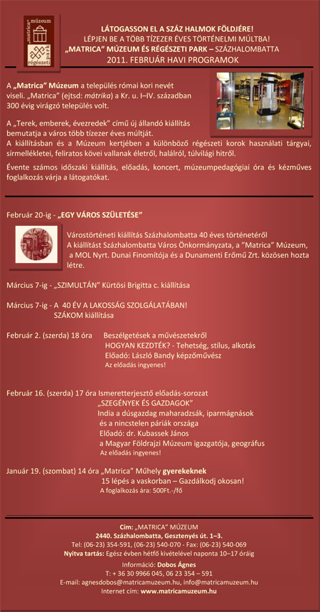 Februári programok a "Matrica" Múzeumban